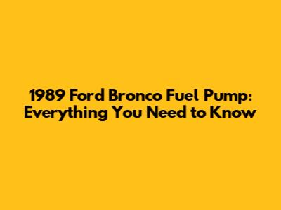 Q: What type of fuel pump does my 1989 Ford Bronco have? A: The 1989 Ford Bronco typically has an in-tank electric fuel pump. This means the fuel pump is located inside the fuel tank.