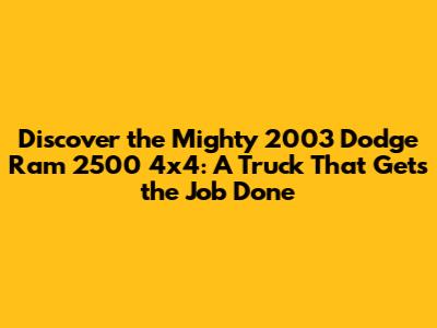 Why the 2003 Ram 2500 4x4 Remains a Smart Buy Today