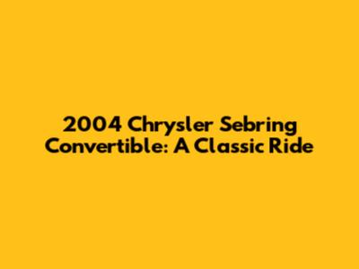 2004 Chrysler Sebring Convertible: A Classic Ride