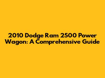 2010 Dodge Ram 2500 Power Wagon: A Comprehensive Guide