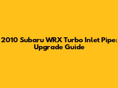 Upgrading the turbo inlet pipe on your 2010 Subaru WRX is a fantastic way to improve performance and reliability. By understanding the function of the inlet pipe, choosing the right aftermarket option, and following the installation and maintenance guidelines, you can ensure that your WRX runs smoothly and efficiently for years to come. So go ahead, give your WRX the upgrade it deserves and enjoy the enhanced driving experience!