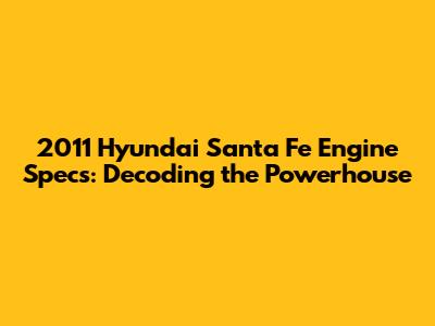 Hey car enthusiasts! Let's dive deep into the heart of the 2011 Hyundai Santa Fe – the engine! Understanding the engine specs is super important if you're thinking about buying one, if you're a current owner, or if you're just a gearhead who loves knowing the nitty-gritty details. We'll break down everything from the engine's cubic centimeters (cc) and horsepower to its fuel efficiency and what kind of driving experience you can expect. Ready? Let's get started!