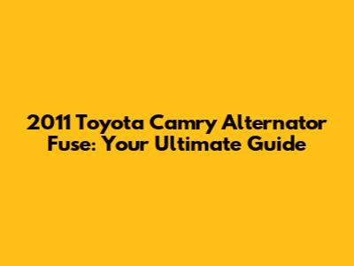 2011 Toyota Camry Alternator Fuse: Complete Guide