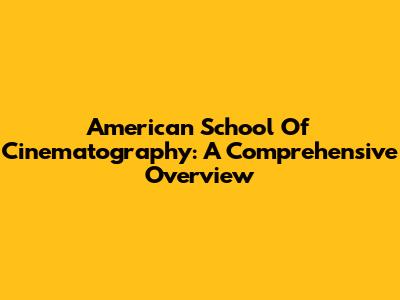 American School Of Cinematography: A Comprehensive Overview