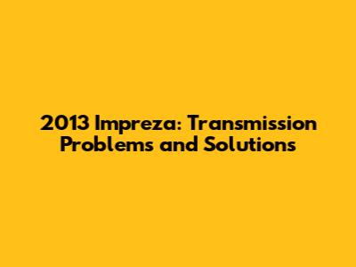 Hey guys! Let's dive into some common transmission issues you might encounter with the 2013 Subaru Impreza. We’ll cover everything from identifying the symptoms to exploring potential fixes, so you can keep your ride smooth and reliable. Whether you're a seasoned car enthusiast or just trying to keep your daily driver in top shape, this guide is for you!