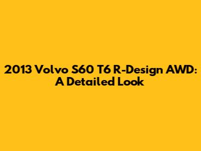 The 2013 Volvo S60 T6 R-Design AWD offers a compelling blend of performance, style, safety, and comfort. Its turbocharged engine delivers brisk acceleration, while its all-wheel-drive system provides enhanced traction and stability. The R-Design package adds a sporty touch to the exterior and interior, while the comprehensive suite of safety features provides peace of mind. While it may not have all the latest technology found in newer vehicles, it offers all the essential features for a connected and enjoyable driving experience. If you're in the market for a used luxury sedan, the 2013 Volvo S60 T6 R-Design AWD is definitely worth considering. Its combination of performance, style, safety, and comfort make it a standout choice in its class. Just be sure to have it inspected by a qualified mechanic before you buy it to ensure that it's in good condition. With proper maintenance, the 2013 Volvo S60 T6 R-Design AWD can provide years of reliable and enjoyable driving.