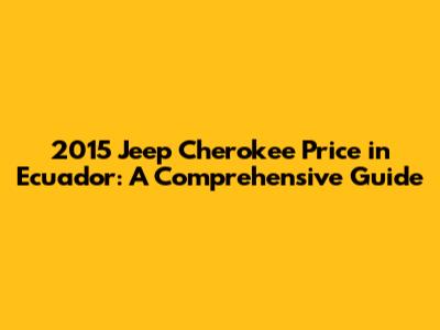 2015 Jeep Cherokee Price In Ecuador: Your Ultimate Guide