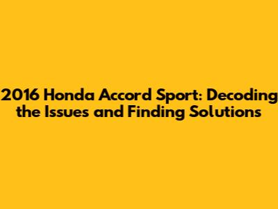 2016 Honda Accord Sport: Common Issues & Solutions