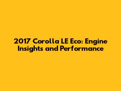 2017 Corolla LE Eco: Engine Insights And Performance