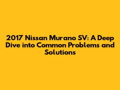 Hey car enthusiasts! Let's talk about the 2017 Nissan Murano SV, a crossover SUV that's been cruising around roads for quite some time. The Murano, in general, has always been a solid choice for those seeking comfort and style, and the 2017 SV trim packs a lot of features. But, like any vehicle, it's not without its quirks. In this article, we'll dive deep into the common issues faced by 2017 Nissan Murano SV owners, offering solutions and insights to help you keep your ride running smoothly. Whether you're a current owner, considering buying one, or just curious, this is your go-to guide. We'll cover everything from engine troubles and transmission woes to electrical gremlins and interior annoyances. So, buckle up, because we're about to explore the ins and outs of the 2017 Murano SV! We'll break down the problems in a way that's easy to understand, providing practical advice and tips. This will give you the knowledge you need to make informed decisions and keep your Murano in tip-top shape. We'll also touch on preventative maintenance and how to spot potential issues before they become major headaches. Getting familiar with the common issues will help in making an informed decision about the vehicle's maintenance and care. Let's get started!