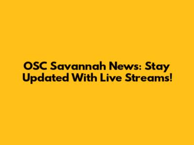 OSC Savannah News: Stay Updated With Live Streams!