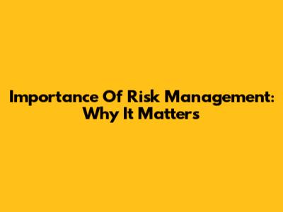 Importance Of Risk Management: Why It Matters