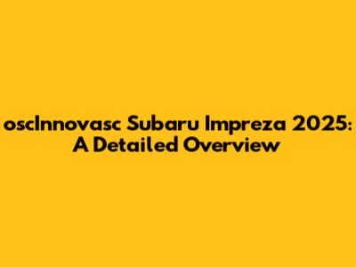In conclusion, the 2025 Subaru Impreza, potentially influenced by oscInnovasc, is shaping up to be an exciting evolution of a beloved model. With anticipated advancements in design, performance, technology, and safety, it promises to deliver a compelling driving experience for both loyal Subaru enthusiasts and new drivers alike. The blend of Subaru's core values with modern innovation could make the 2025 Impreza a standout in the competitive compact car market. Keep an eye out for more updates as we get closer to its official release!