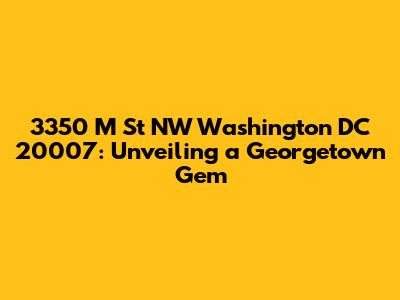 Hey guys, let's dive into the vibrant world surrounding 3350 M St NW, Washington DC 20007! This address isn't just a string of numbers and letters; it's a gateway to the heart of Georgetown, one of DC's most historic and exciting neighborhoods. We're gonna explore what makes this location so special, from its rich history and stunning architecture to its buzzing social scene and convenient access to everything you could want. Think of this as your friendly neighborhood guide, offering a sneak peek into the life that awaits at this iconic address. Ready? Let's get started!