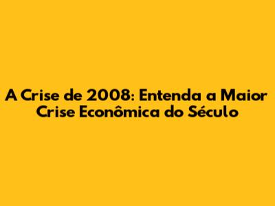 A Crise De 2008: Entenda A Maior Crise Econômica Do Século