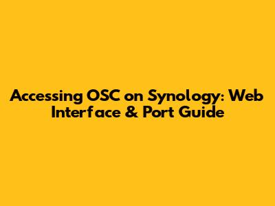 Accessing OSC On Synology: Web Interface & Port Guide