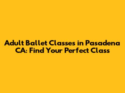 Adult Ballet Classes In Pasadena CA: Find Your Perfect Class