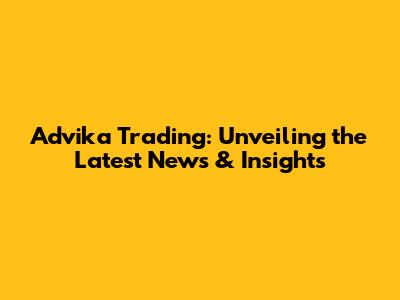 Advika Trading: Unveiling The Latest News & Insights