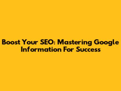 Boost Your SEO: Mastering Google Information For Success