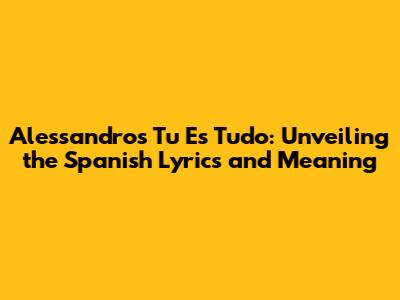 Alessandro's 'Tu Es Tudo': Spanish Lyrics & Meaning