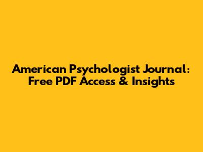 American Psychologist Journal: Free PDF Access & Insights