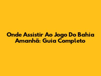 Onde Assistir Ao Jogo Do Bahia Amanhã: Guia Completo