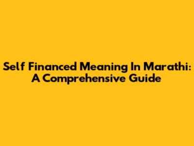 Self Financed Meaning In Marathi: A Comprehensive Guide