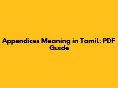 Appendices Meaning In Tamil: PDF Guide