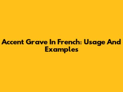 Accent Grave In French: Usage And Examples