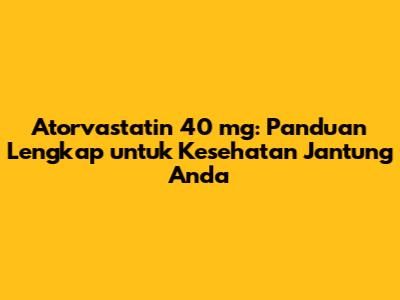 Atorvastatin 40 mg adalah obat yang sangat efektif dalam menurunkan kadar kolesterol dan mengurangi risiko penyakit jantung. Dengan memahami manfaat, dosis, efek samping, dan cara penggunaannya, Anda dapat bekerja sama dengan dokter Anda untuk mengoptimalkan pengobatan Anda. Ingatlah bahwa atorvastatin hanyalah bagian dari rencana perawatan kesehatan jantung yang komprehensif.
