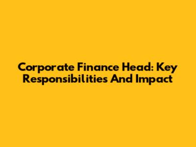 Corporate Finance Head: Key Responsibilities And Impact