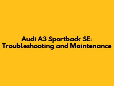 Audi A3 Sportback SE: Troubleshooting And Maintenance
