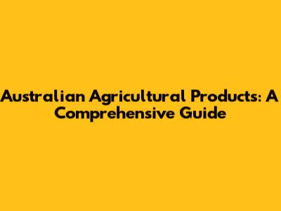 Australian Agricultural Products: A Comprehensive Guide
