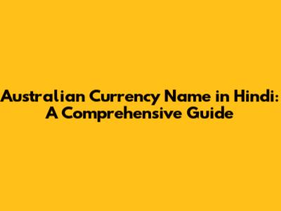 What is Australian Currency Called in Hindi?