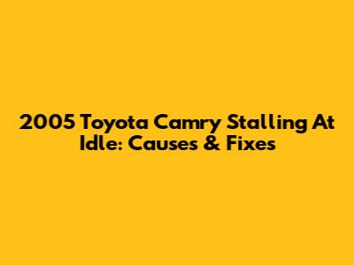 2005 Toyota Camry Stalling At Idle: Causes & Fixes