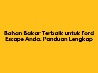 Bahan Bakar Terbaik Untuk Ford Escape Anda: Panduan Lengkap