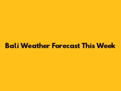 Bali Weather Forecast: What To Expect This Week