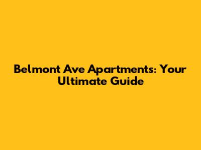 Belmont Ave Apartments: Your Ultimate Guide