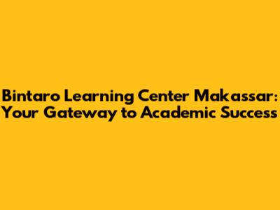 Bintaro Learning Center Makassar: Your Guide To Academic Excellence