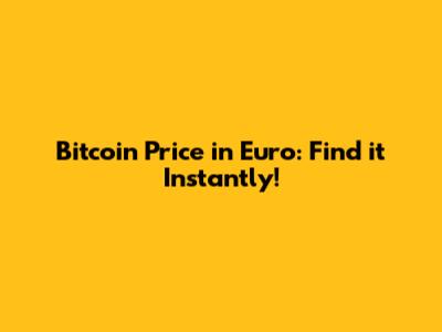 Bitcoin Price In Euro: Find It Instantly!