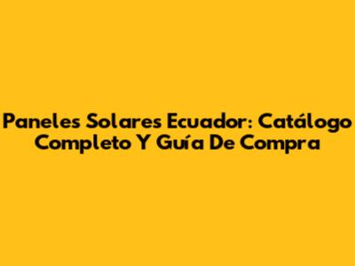 Paneles Solares Ecuador: Catálogo Completo Y Guía De Compra