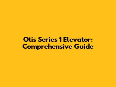 Otis Series 1 Elevator: Comprehensive Guide