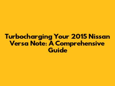 Hey guys! So, you're looking to soup up your 2015 Nissan Versa Note, huh? Awesome! One of the most exciting ways to do that is by adding a turbo kit. This guide is all about helping you understand everything you need to know about getting a turbo kit for your Versa Note. We'll dive into what a turbo kit is, the benefits, the things you should consider, and even some of the potential downsides. Let's get started and make your Versa Note a real head-turner!