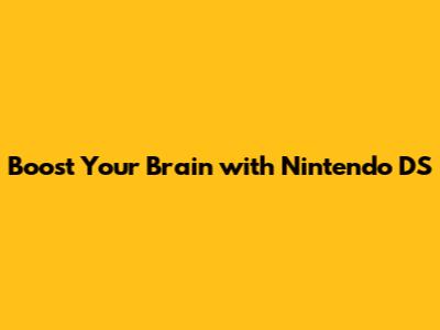 Boost Your Brain With Nintendo DS