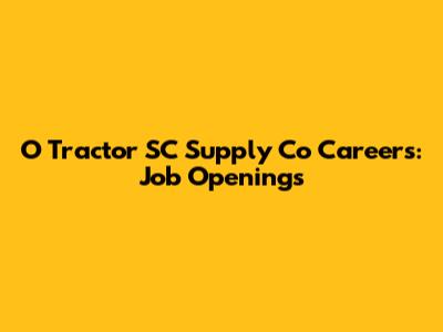 O Tractor SC Supply Co Careers: Job Openings