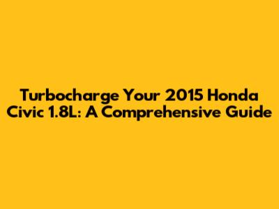 Boost Your Ride: 2015 Honda Civic 1.8L Turbo Kit Guide