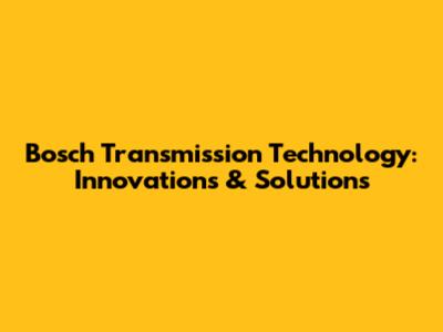 Bosch Transmission Technology: Innovations & Solutions