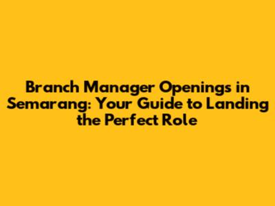Where to Find Branch Manager Openings in Semarang