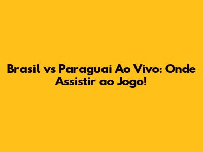 Brasil Vs Paraguai Ao Vivo: Onde Assistir Ao Jogo!