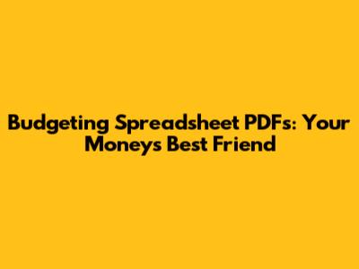 Budgeting Spreadsheet PDFs: Your Money's Best Friend